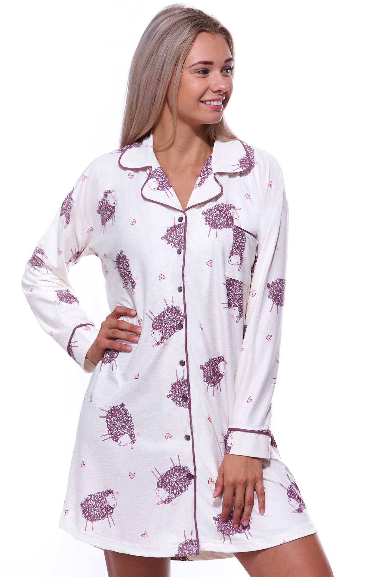 Béžová i hnědá celopropínací hřejivá noční košile s límečkem vzor ovečky. Dámská noční košilka s límečkem a celopropínacím zapínáním – elegantní a praktická volba pro pohodlný spánek. Vyrobena z příjemného jemného materiálu, z nádherného materiálu, který je nazýván druhou kůží, který je měkký, pružný a šetrný k pokožce. Celopropínací design usnadňuje oblékání a dodává košilce stylový vzhled s límečkem u krku. Kvalitní zpracování zajišťuje dlouhou životnost i po opakovaném praní. Originální design podtrhuje jedinečnost tohoto kousku. Perfektní volba pro ženy, které hledají kombinaci komfortu, funkčnosti a elegance.