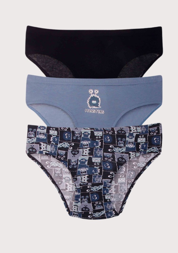 Chlapecké slipy set 3 kusů - strašidla, monstra. Chlapecké slipy – pohodlné spodní prádlo pro kluky, vyrobené z velice jemného a poddajného elastického materiálu. Vysoká kvalita zpracování zajišťuje maximální komfort a dlouhou životnost. Díky výhodnému balení jsou tyto slipy ideální volbou pro každodenní nošení, poskytující svobodu pohybu a příjemný pocit během všech aktivit. Skvělá volba pro malé dobrodruhy! Nádherný set tří kusů.