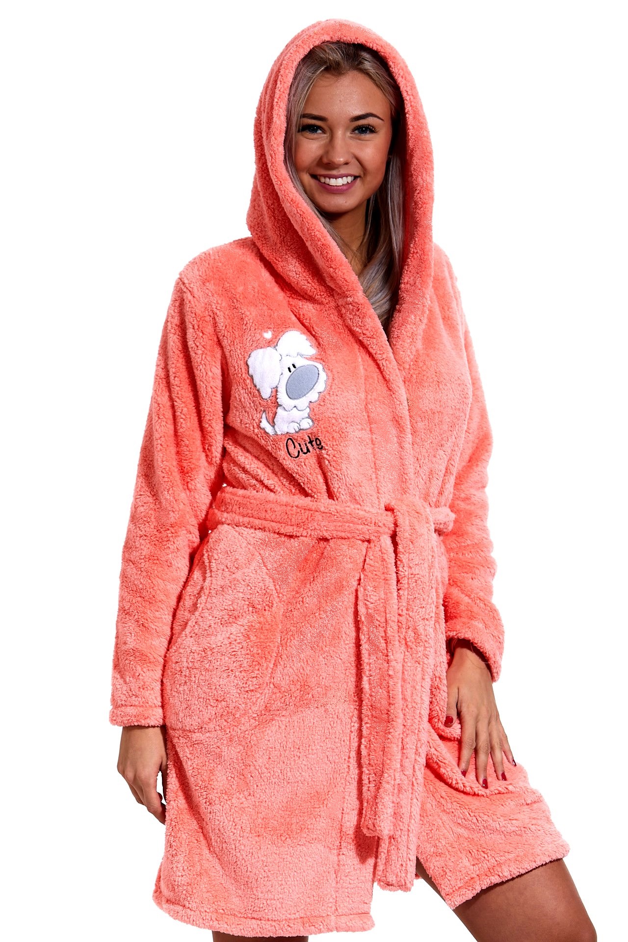 Meruňkový dámský župan huňatý s pejskem CUTE