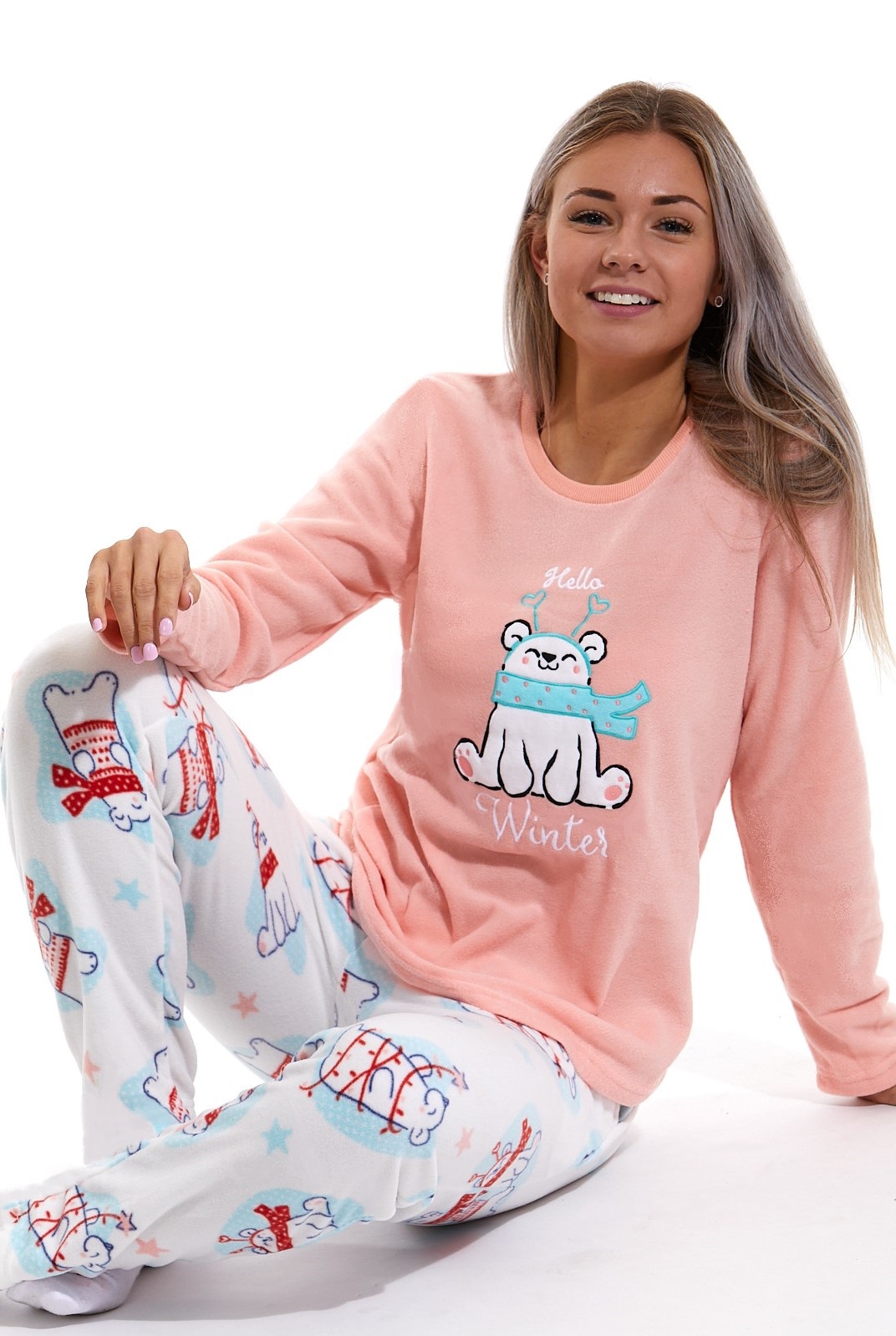Růžovo bílé teplé dámské pyžamo, Lední medvídek
