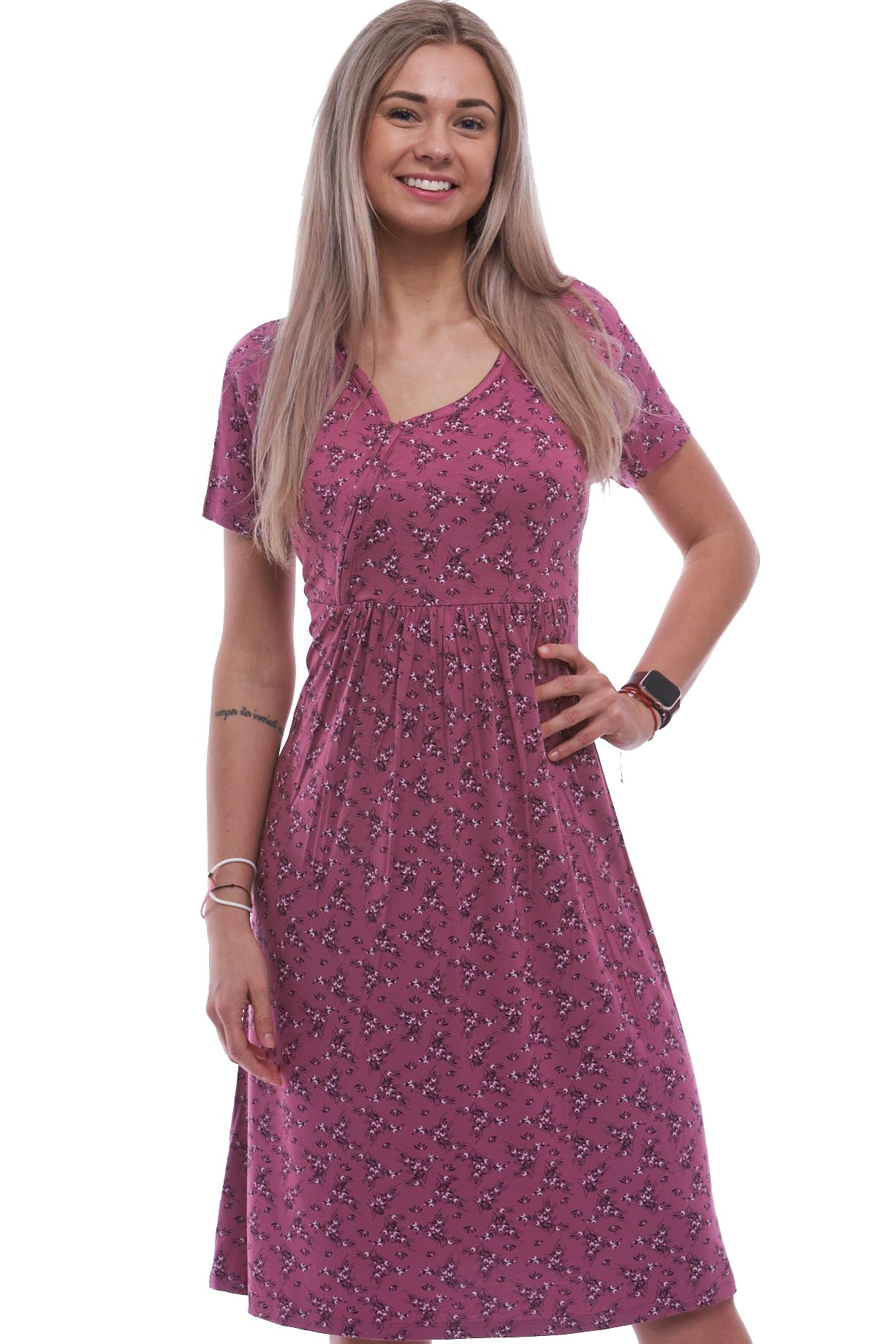 Malinová hedvábně jemná košilka pro elegantní ženu květinový vzor. Tato elegantní košilka v - barvě s jemným motivem - je ideální jak pro volnočasové nošení, tak pro pohodlný spánek. Extra jemný a pružný materiál z viskózy zajišťuje maximální komfort. Krátké rukávy a jemně tvarované sedýlko na prsou dodávají košilce lichotivý střih, zatímco praktický zip uprostřed usnadňuje oblékání. Áčkový střih od prsou dolů se postará o volnost pohybu a elegantní vzhled. Tato košilka spojuje pohodlí s vkusným designem, díky kterému se budete cítit příjemně po celý den i noc.