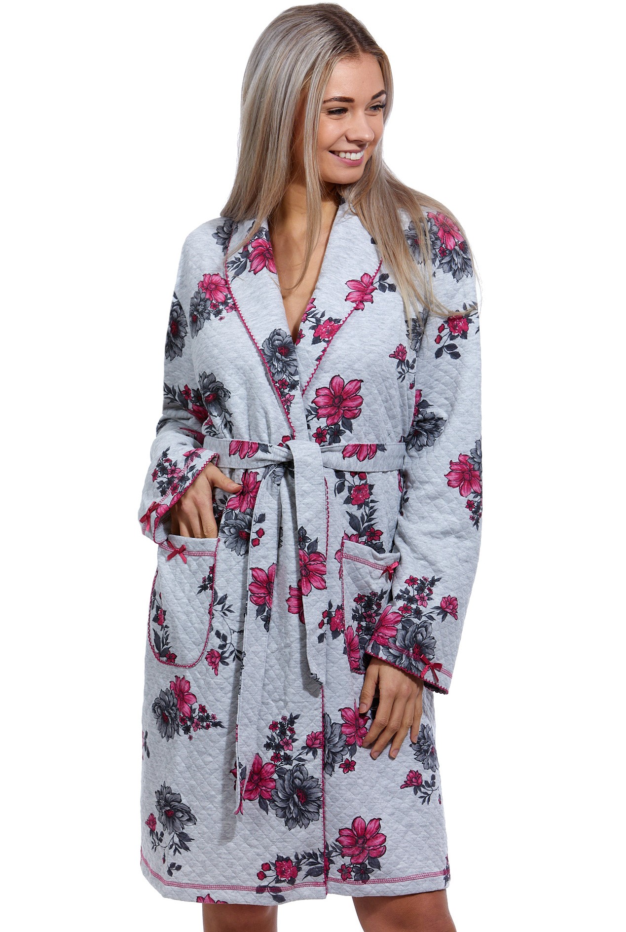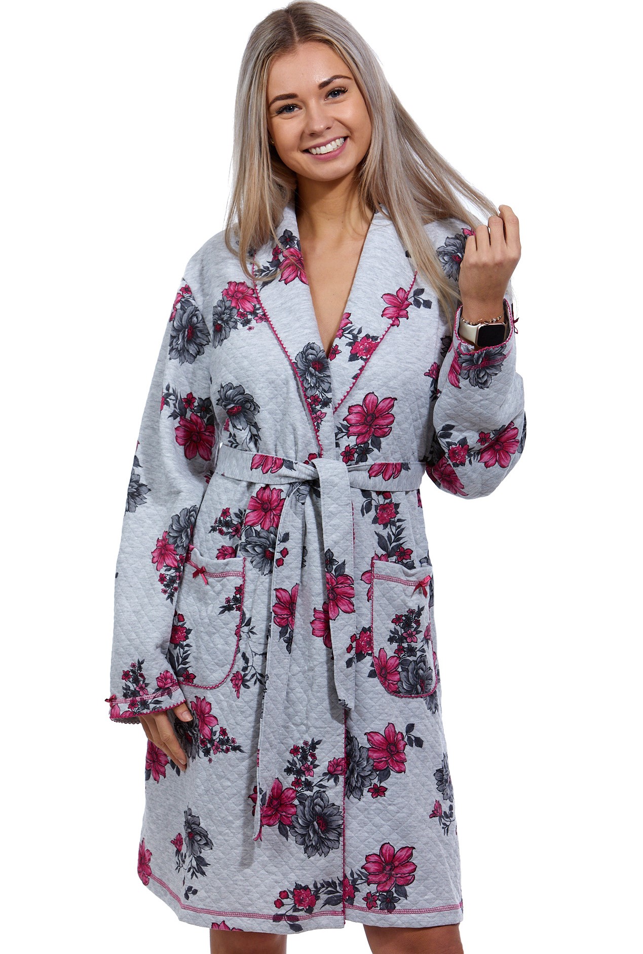 Malinový i šedý romantický luxusní květovaný kojící župan pro plnoštíhlé ženy PEONIES