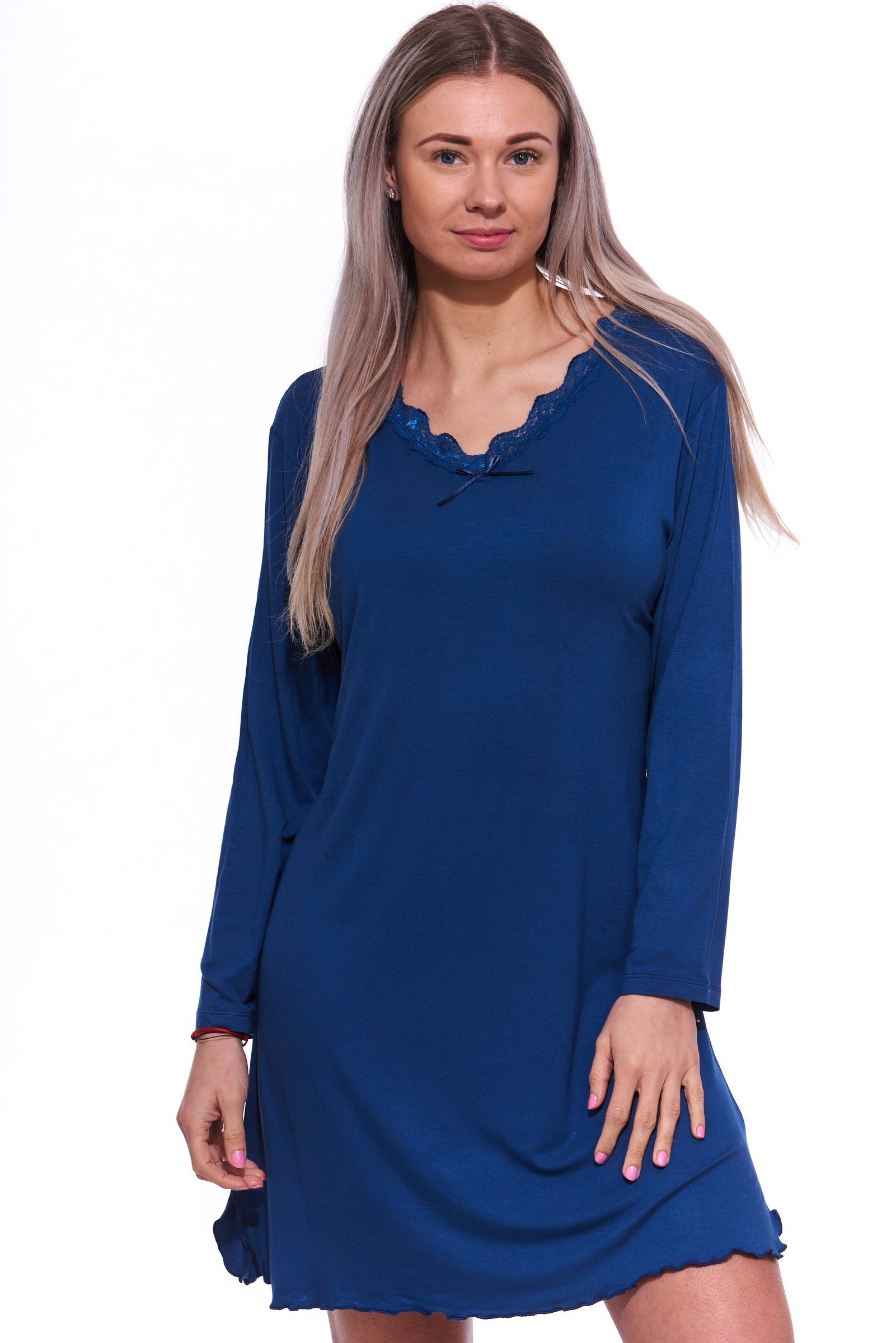 Modrá luxusní jemná noční košilka pro ženy s dlouhými rukávy. Vstupte do světa luxusu a elegance s naší noční košilkou s dlouhými rukávy. Vyrobena z hedvábně jemného materiálu, který se příjemně přizpůsobuje vašemu tělu a je velice jemný na dotek, tato košilka vám poskytne nezapomenutelný zážitek nočního odpočinku. Díky kvalitnímu zpracování a originálnímu designu bude každá noc nejen pohodlná, ale i stylová. Dopřejte si nadstandardní komfort a krásu s tímto elegantním kouskem. Extra pružný materiál.