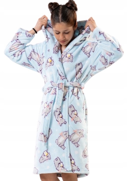 Nebesky modrý extra teplý huňatý župan holčičí s Medvídky
