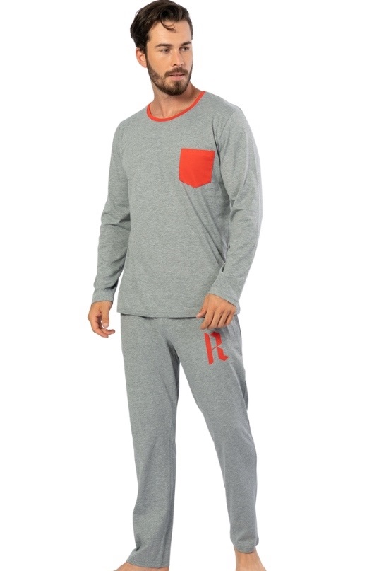 Šedo červené pyžamo pro muže - R s kapsou