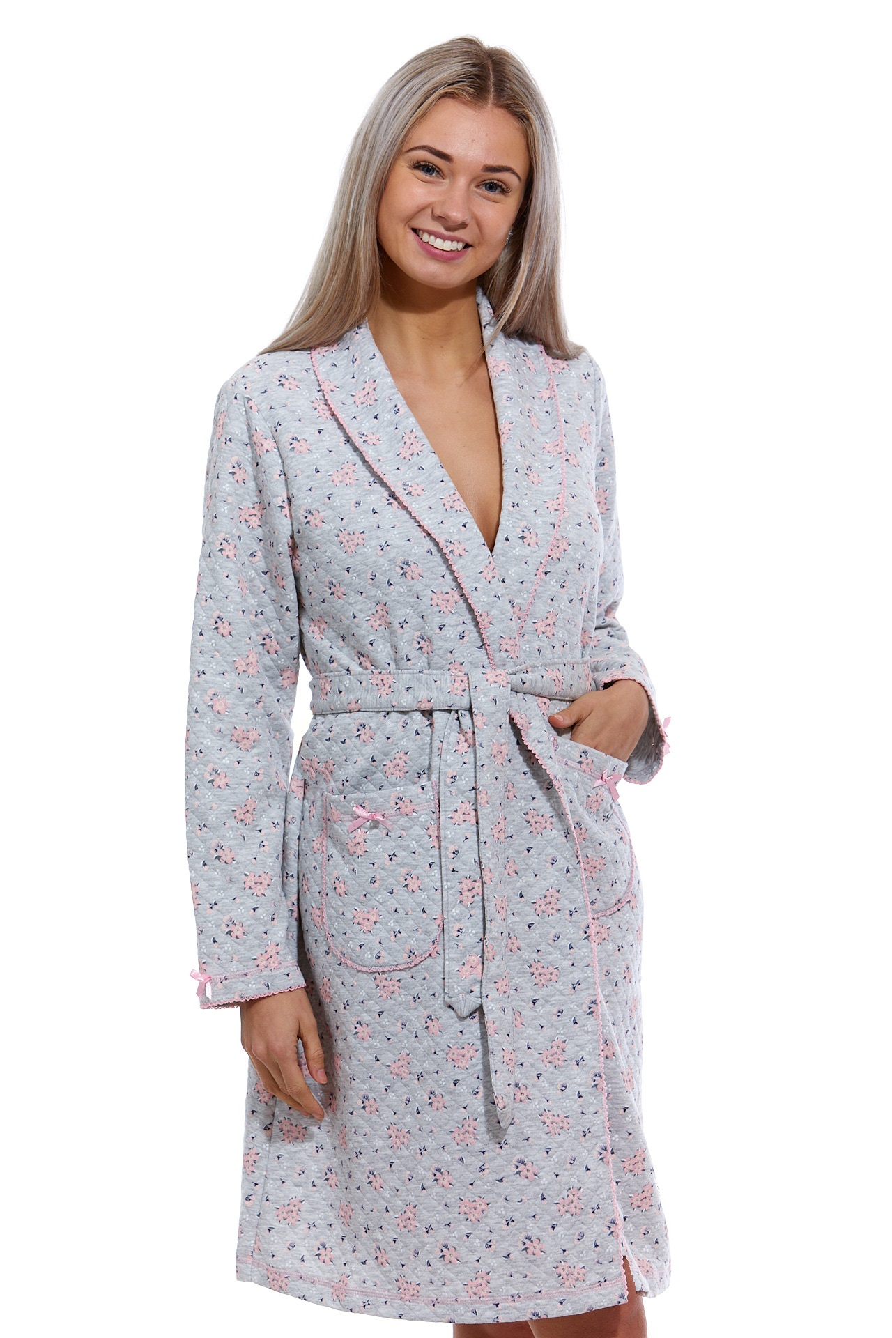 Růžový i šedý romantický luxusní květovaný župan pro ženy ROSES