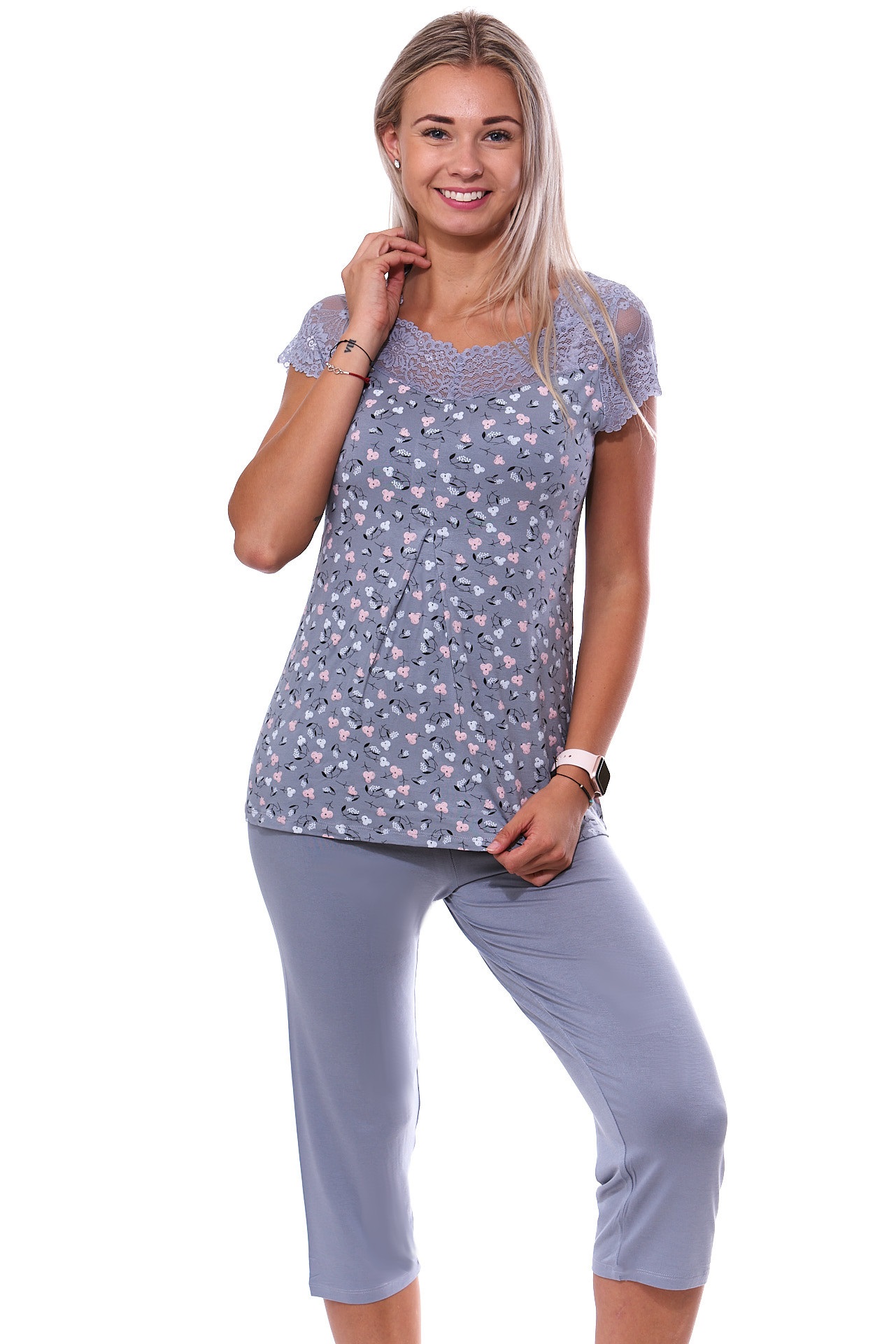 Luxusní dámské pyžamo s krátkým rukávem a 3/4 kalhoty