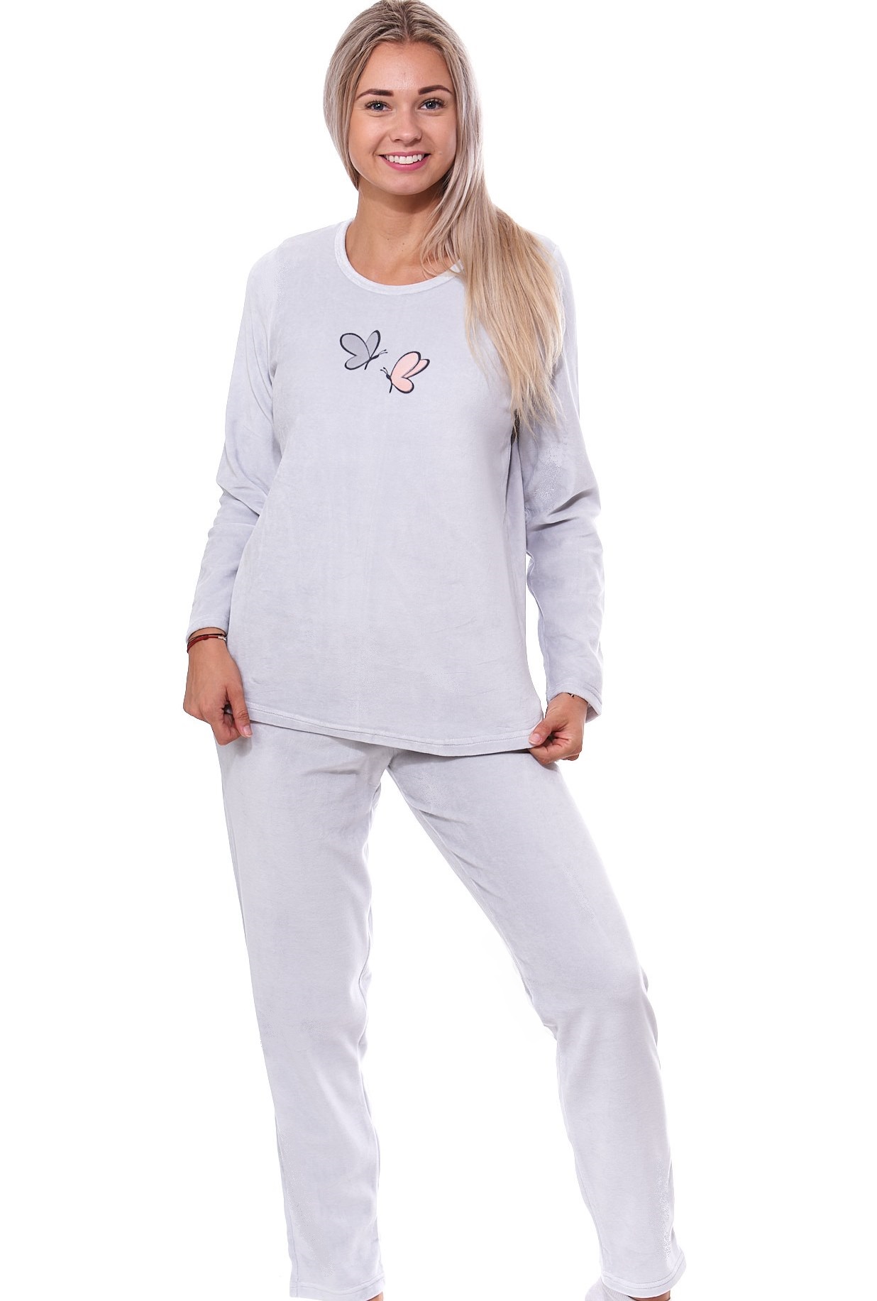 Šedé luxusní hřejivé bavlněné sametové pyžamo pro ženy či dívky s motýlky