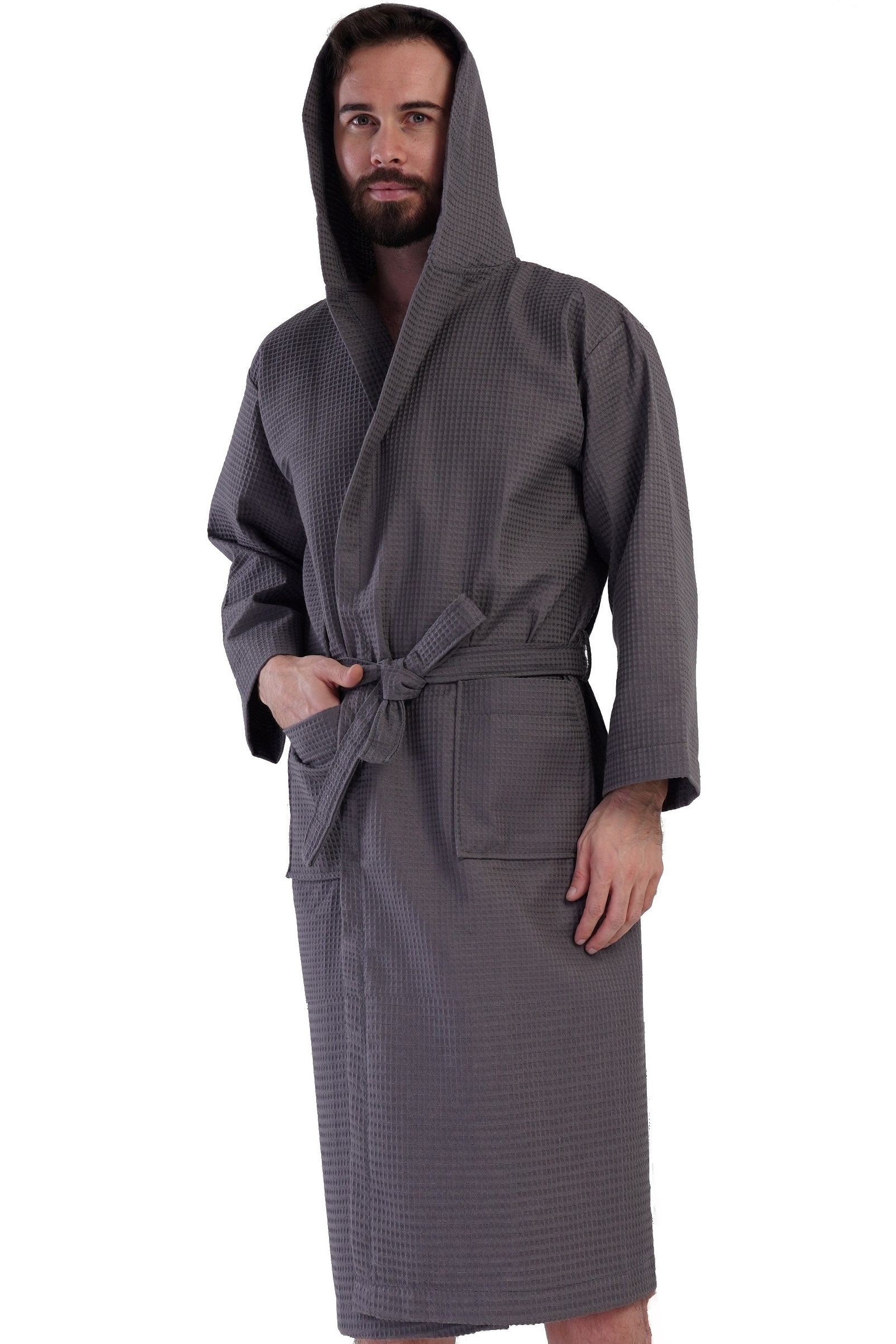 Tento župan je vrcholem pohodlí a stylu. Kapuce poskytne teplo a ochranu, dvě prostorné kapsy nabídnou praktické úložiště a pásek umožní přizpůsobení obvodu. Vzorovaného piké působí župan výjimečně luxusně a zároveň funkčně – ideální na doma, po sprše i jako dárek.