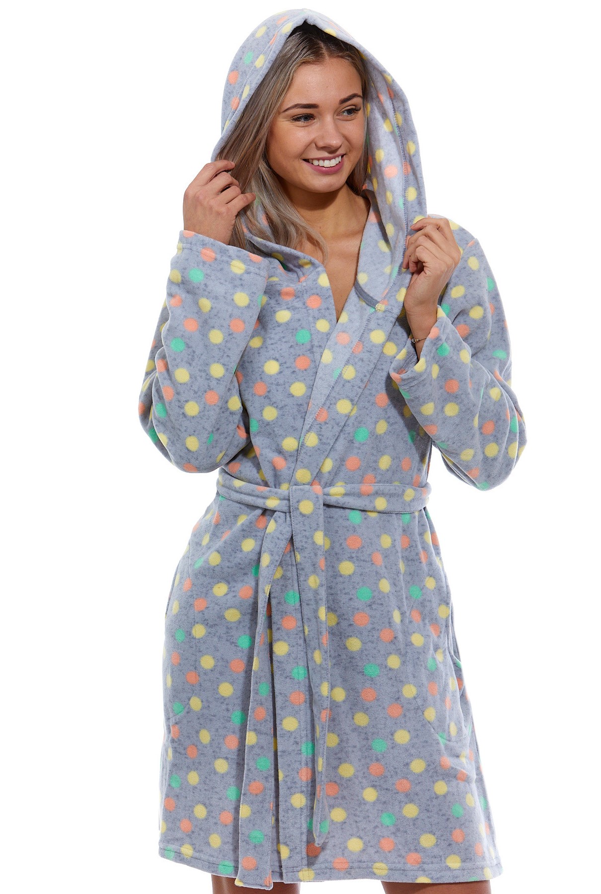 Šedý, oranžový, žlutý i zelený hřejivý župan pro ženy i slečny DUHOVÉ PUNTÍKY