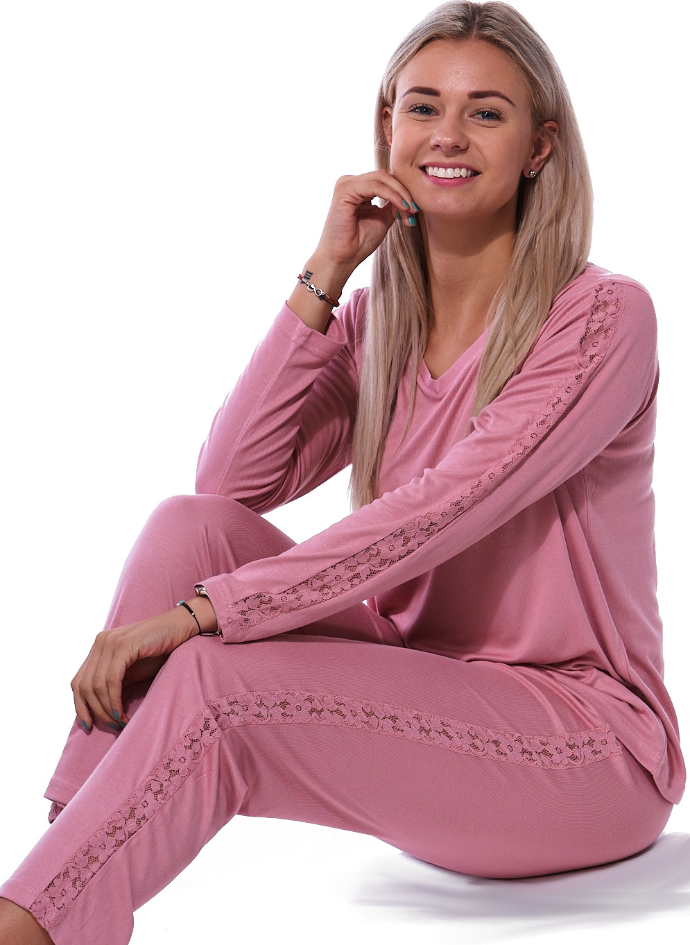 Starorůžové jemné luxusní i elegantní s krajkou pyžamo pro ženy či dívky