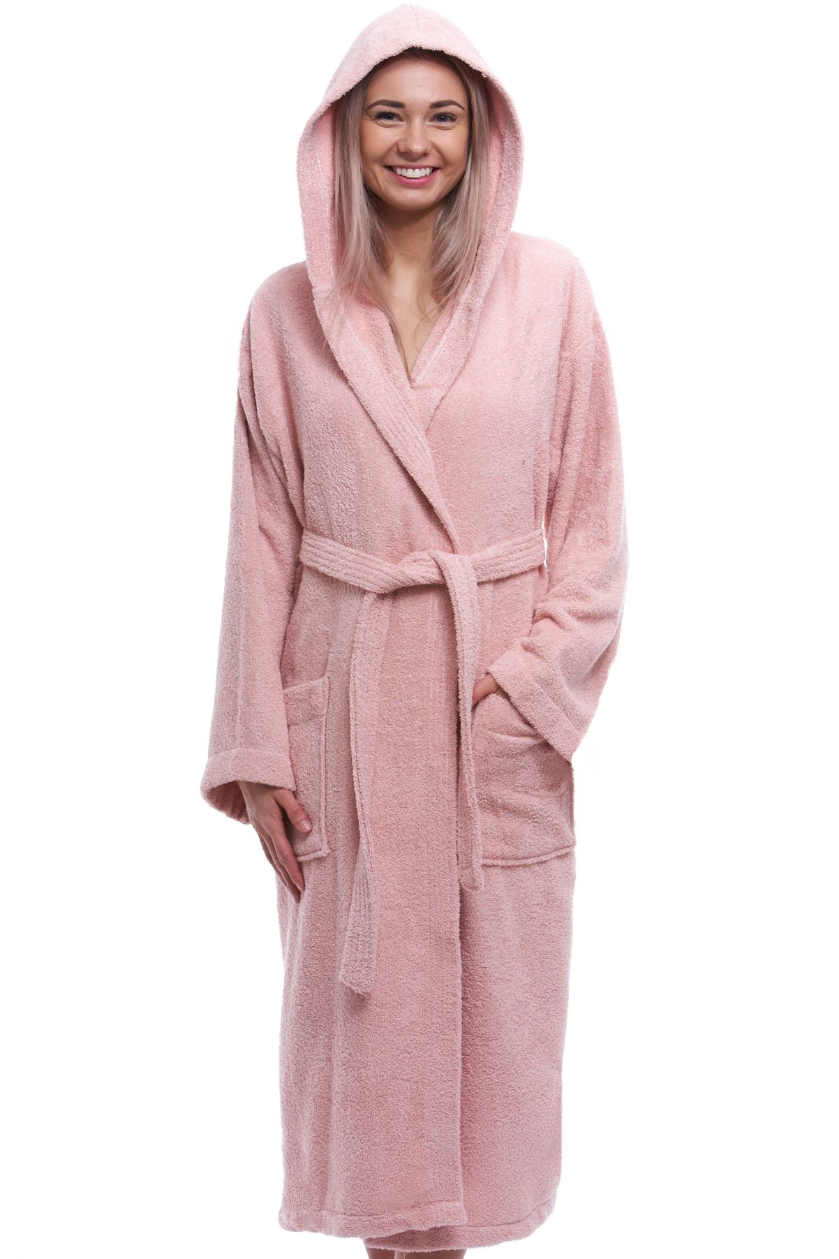 Dlouhý dámský župan s kapucí z příjemně bavlněného froté materiálu, který vám zajistí maximum komfortu při nošení