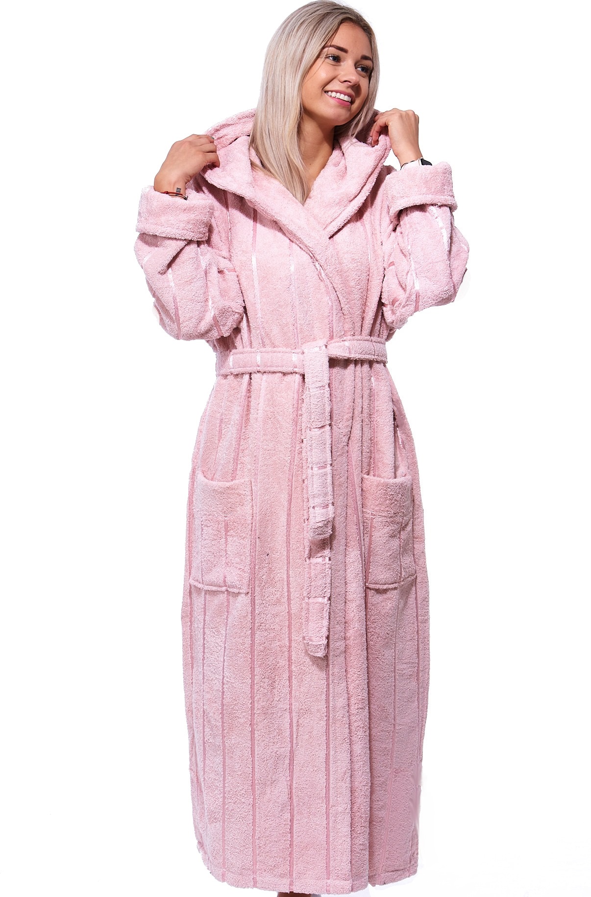 Starorůžový luxusní dlouhý župan pro ženu z extra froté ESTELA