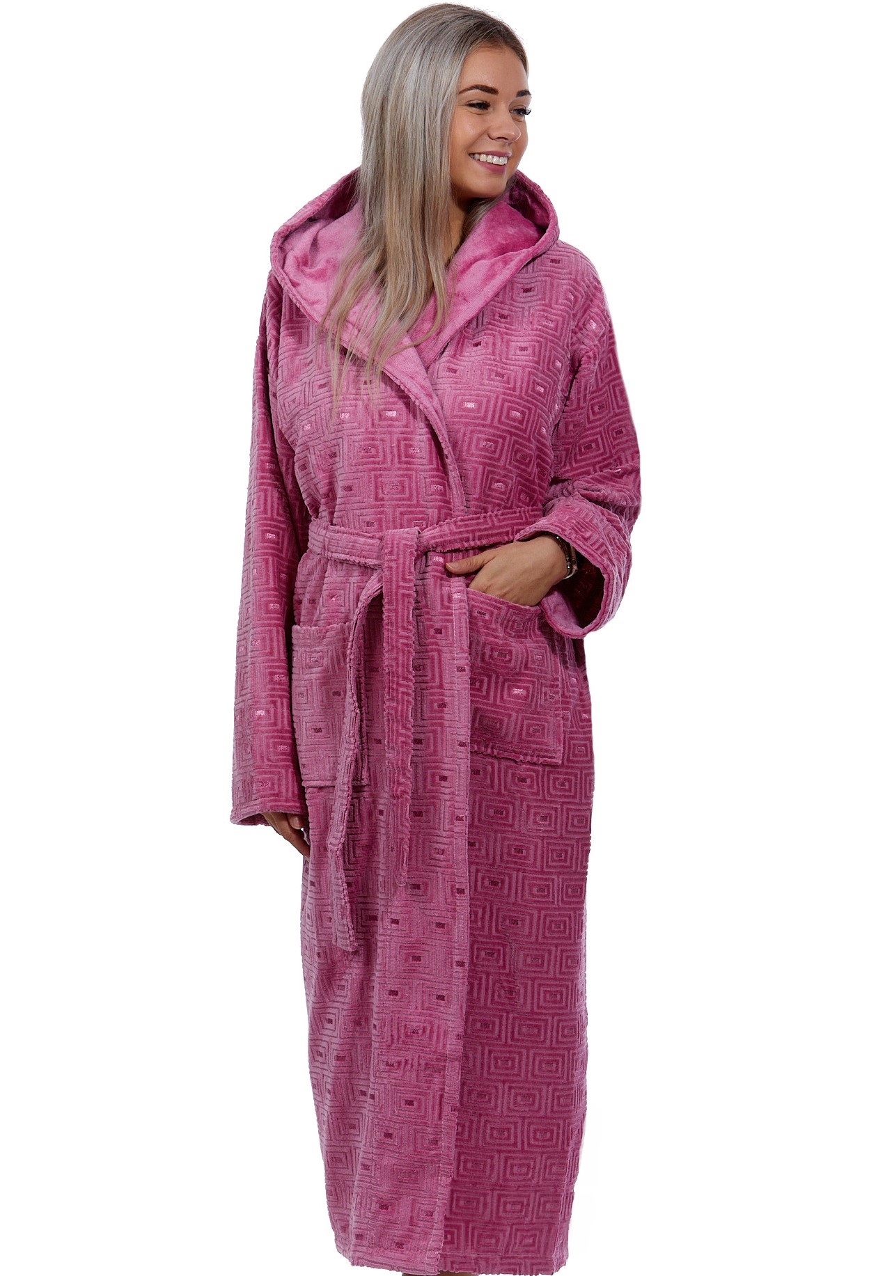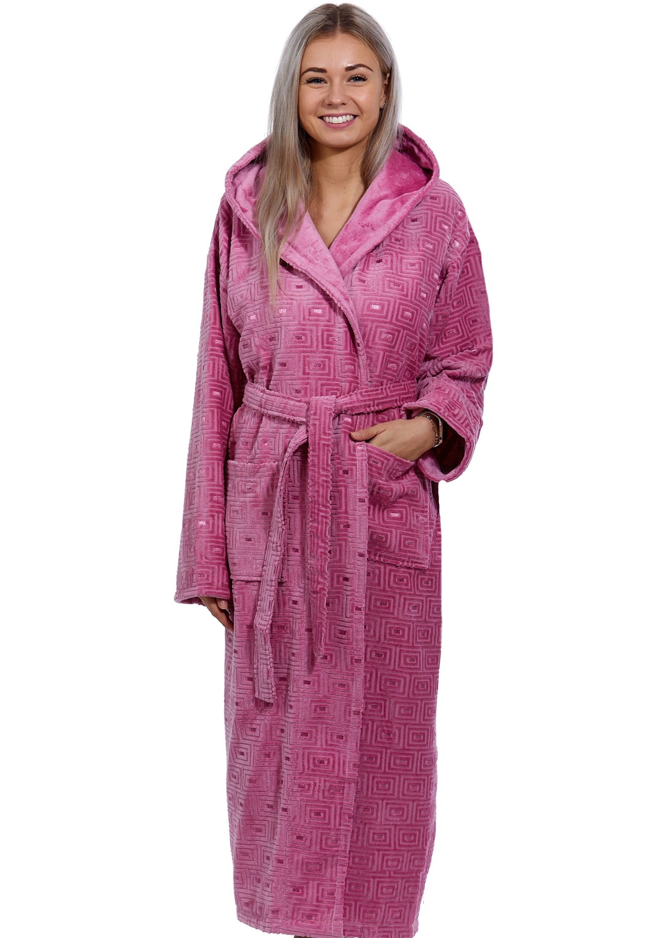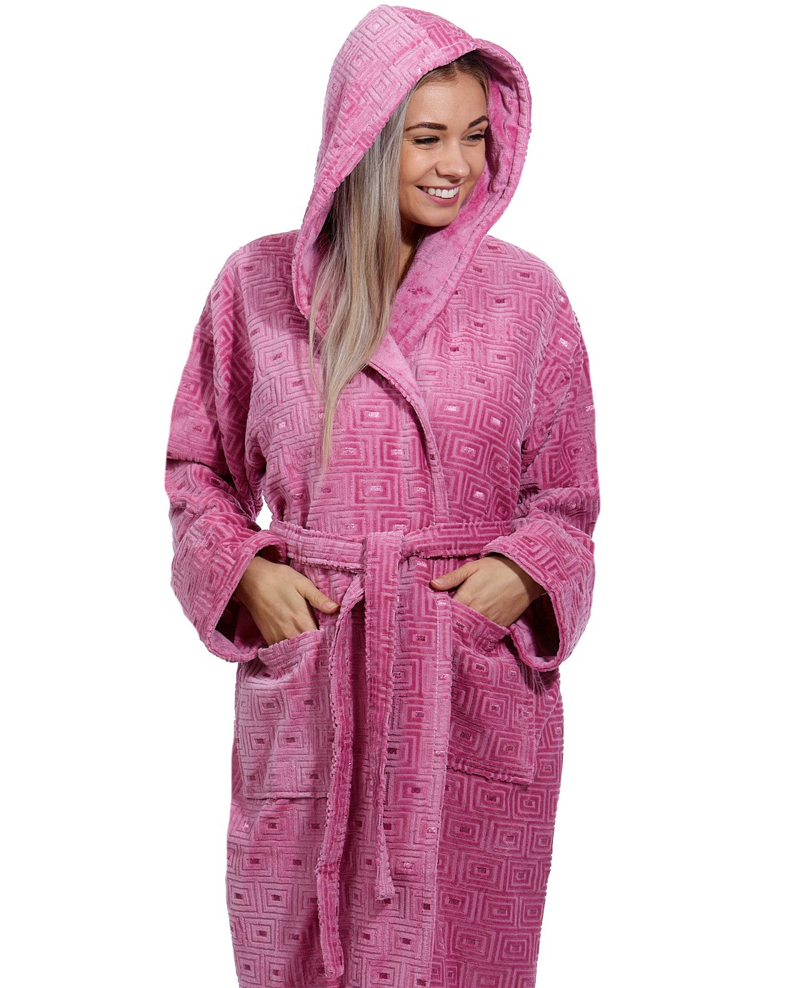 Prémiový dámský župan je velice kvalitní z jemné teplé silné froté 100% bavlny s hlubokou kapucí, který má dvě hluboké kapsy po stranách.