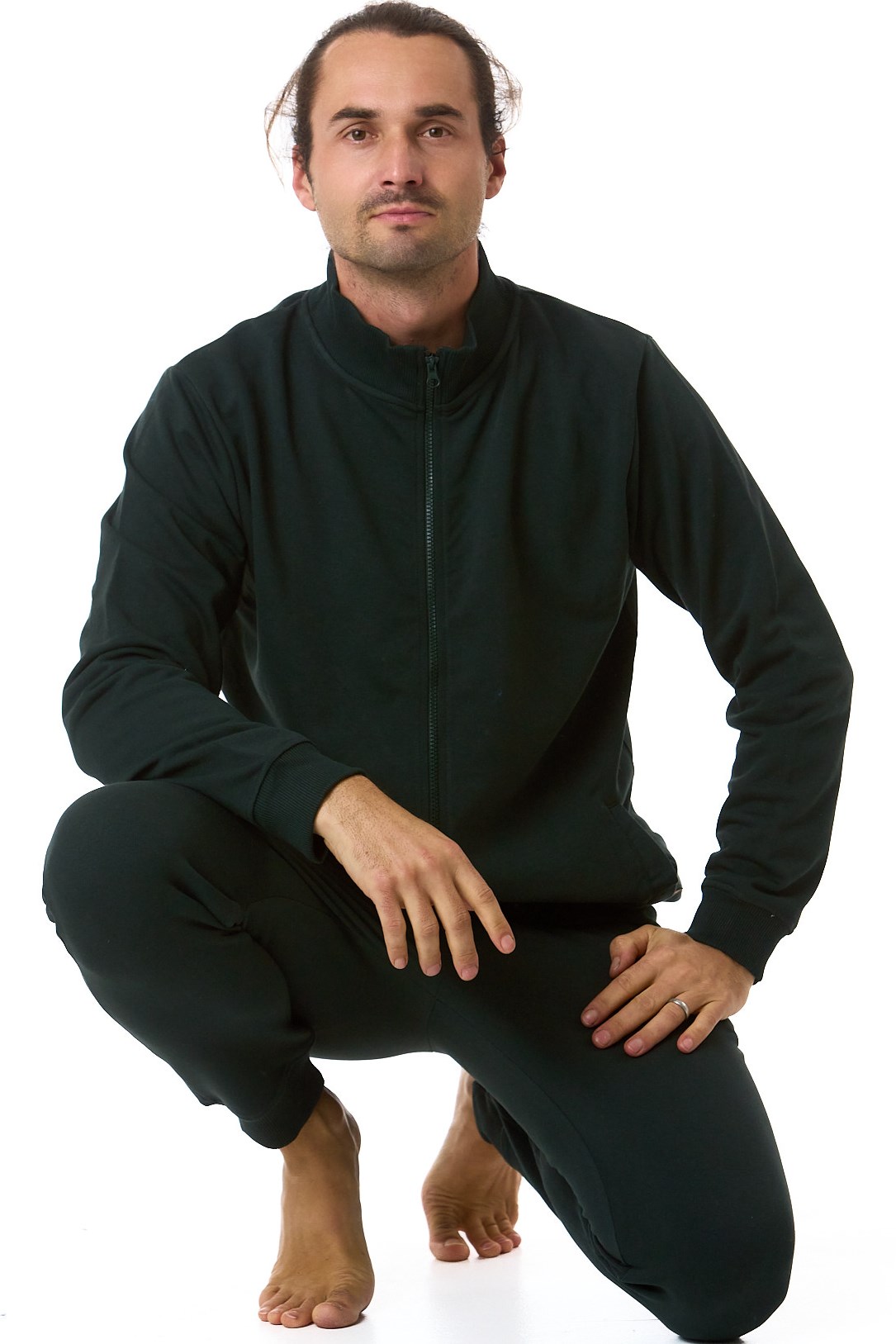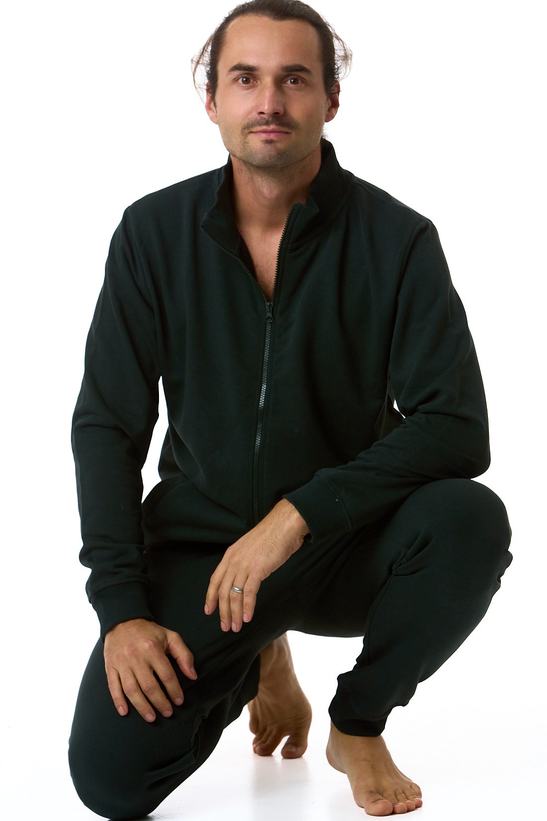 Tmavě zelené bavlněné extra hřejivé pánské pyžamo na zip