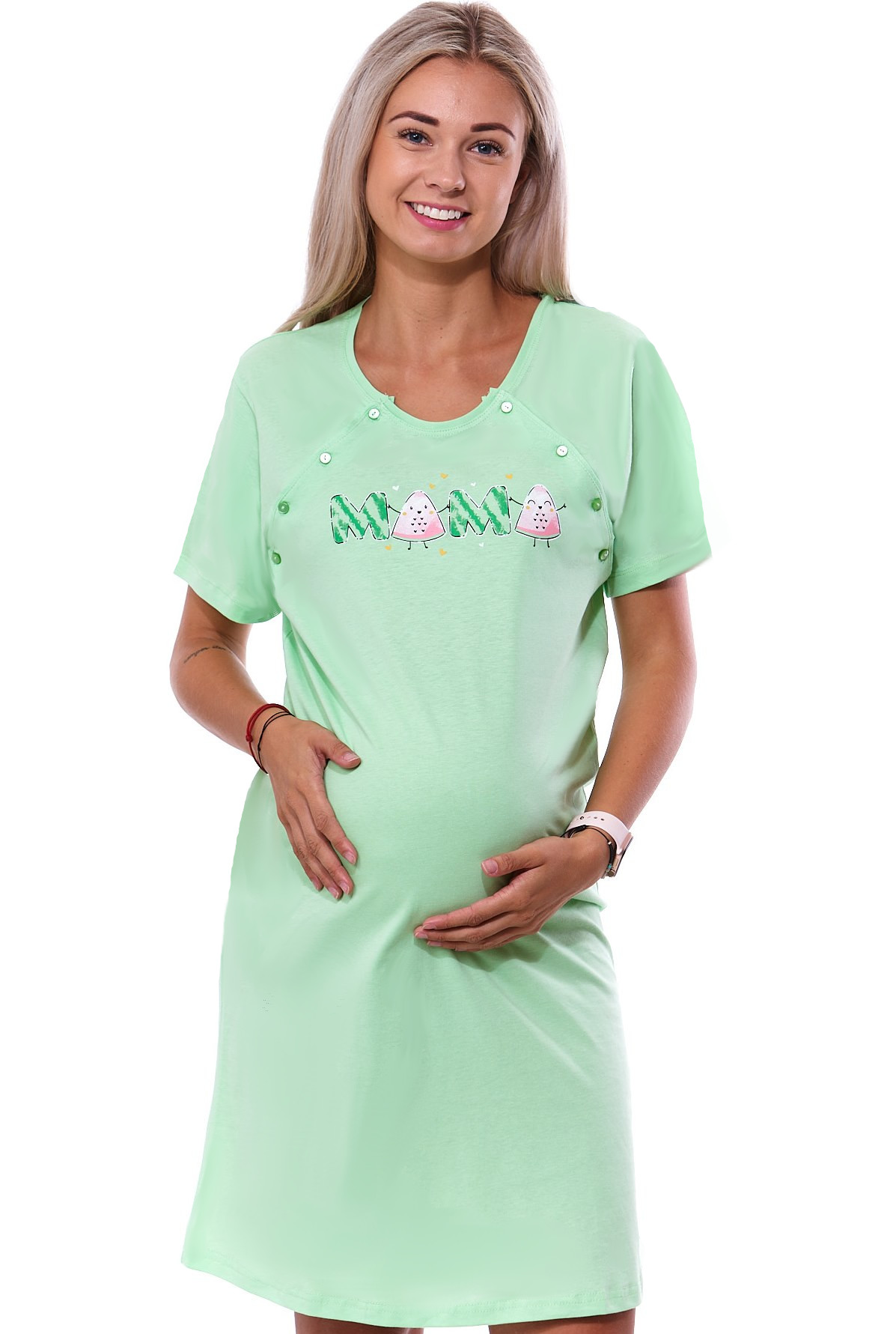 Zelená kojící noční košilka dvojpropínací na knoflíky MÁMA a meloun. Objevte maximální pohodlí a praktičnost s naší kojící dámskou noční košilkou s dvojitým propínáním na knoflíky. Tato noční košilka je vyrobena z kvalitní bavlny, která poskytuje měkkost a prodyšnost, což je ideální pro klidný spánek a pohodlné kojení.