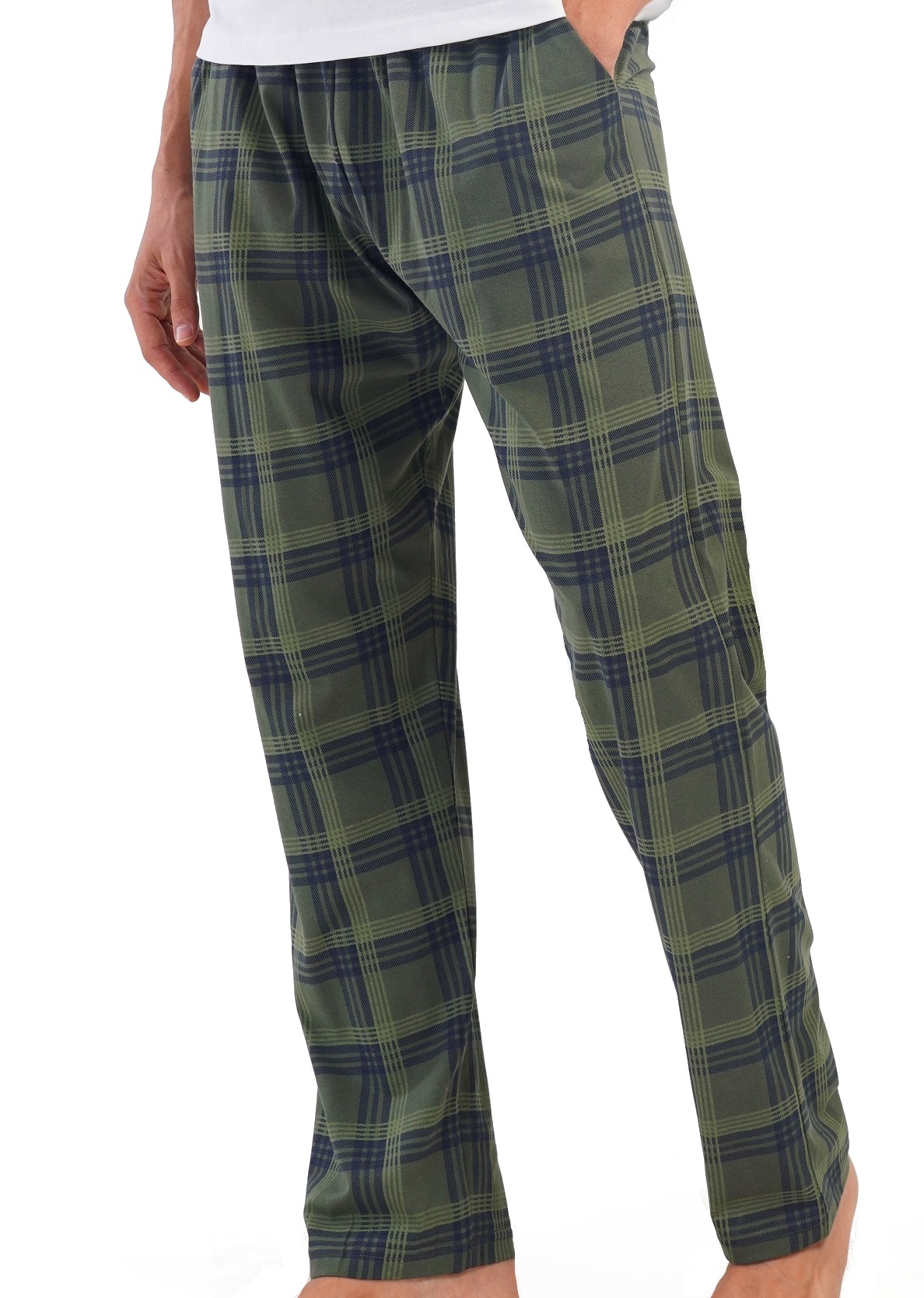 Zelené a tmavě modře kárované pyžamové kalhoty pánské z bavlny