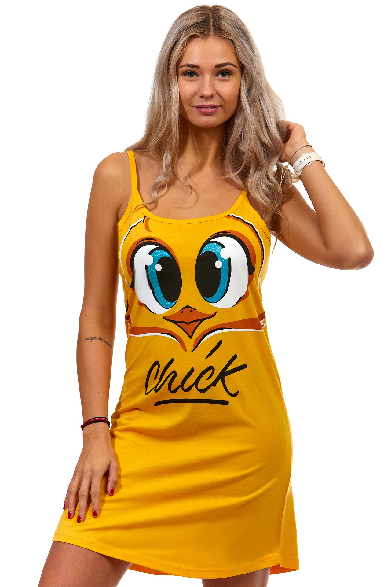 Žlutá dámská košilka s tenkými ramínky KUŘÁTKO
