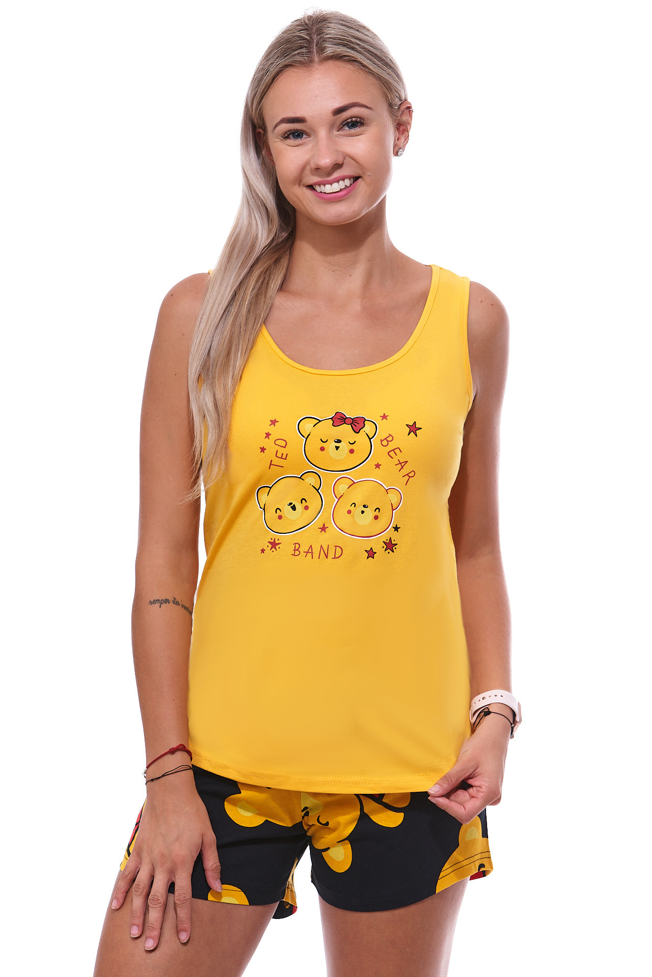 Žluté modré i červené pyžamo pro ženy či dívky s krátkou nohavicí medvídek PÚ